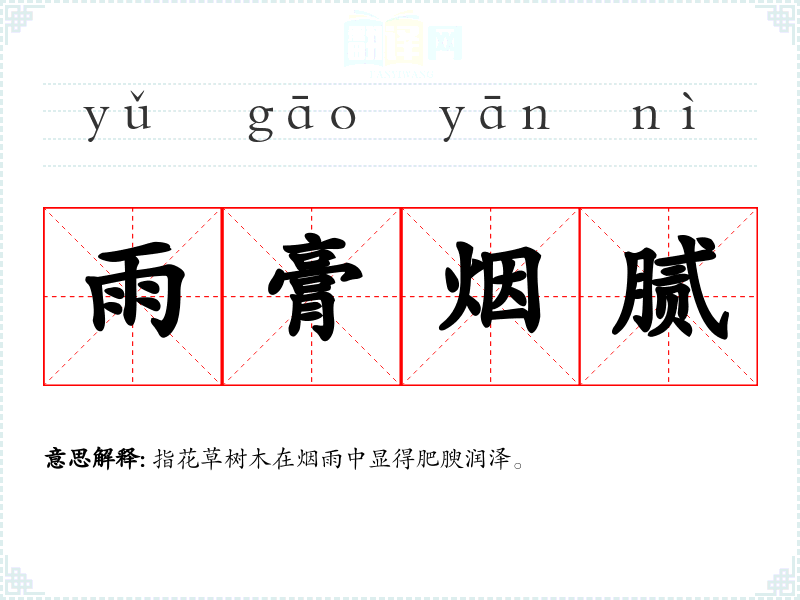 雨膏烟腻的分字解释