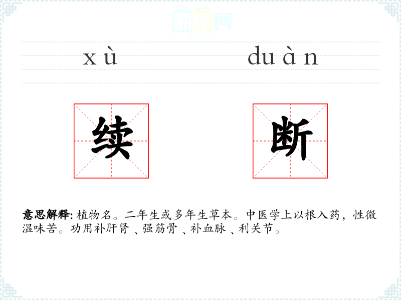 植物名。二年生或多年生草本。中医学上以根入药,性微温味苦。功用补肝肾﹑强筋骨﹑补血脉﹑利关节。