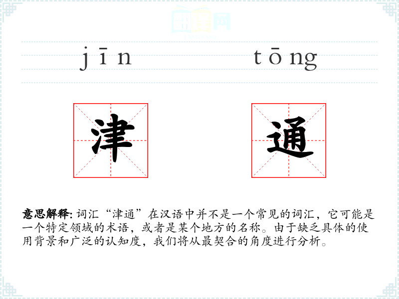 由于“津通”不是一个常用词汇,其词源和历史演变可能不为人所熟知。它可能是由“津”和“通”两个常用字组合而成,用以表达特定的意义。