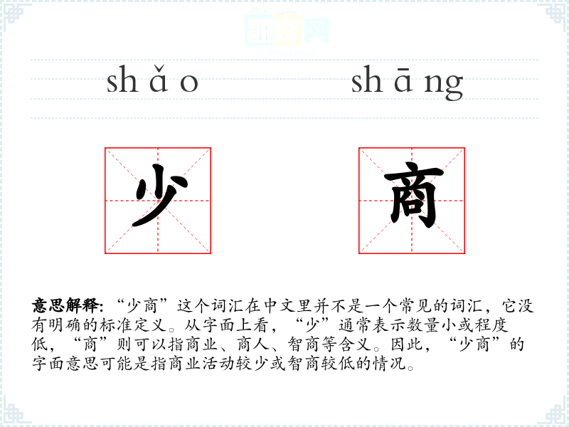 “少商”这个词汇在中文里并不是一个常见的词汇,它没有明确的标准定义。从字面上看,“少”通常表示数量小或程度低,“商”则可以指商业、商人、智商等含义。因此,“少商”的字面意思可能是指商业活动较少或智商较低的情况。