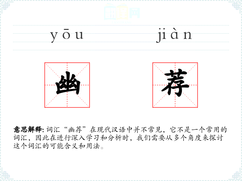 由于“幽荐”不是一个常用词汇,它在不同语言或文化中的对应词汇及其使用情况不详。