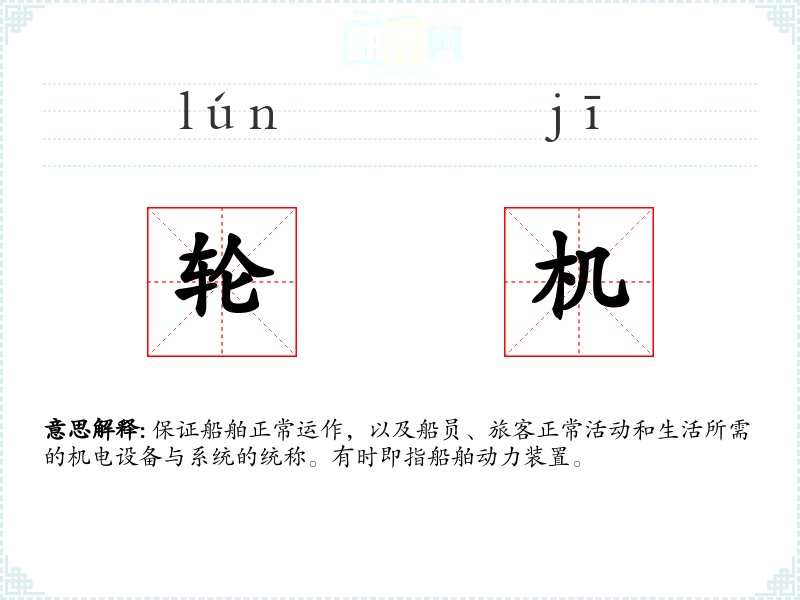 保证船舶正常运作,以及船员、旅客正常活动和生活所需的机电设备与系统的统称。有时即指船舶动力装置。