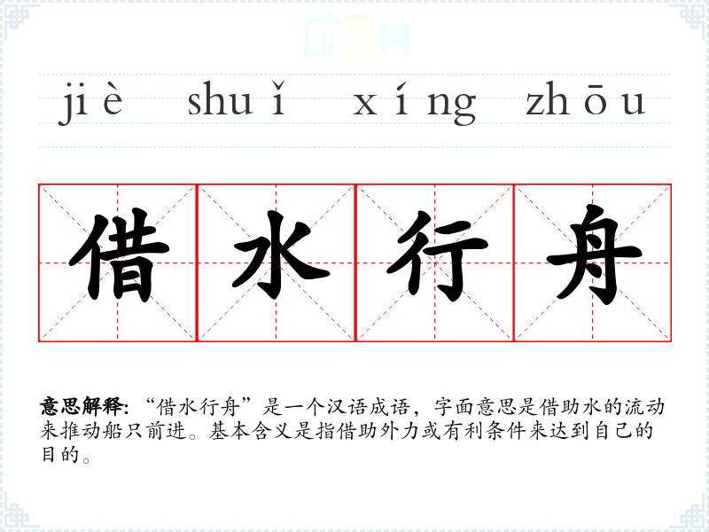 “借水行舟”是一个汉语成语,字面意思是借助水的流动来推动船只前进。基本含义是指借助外力或有利条件来达到自己的目的。