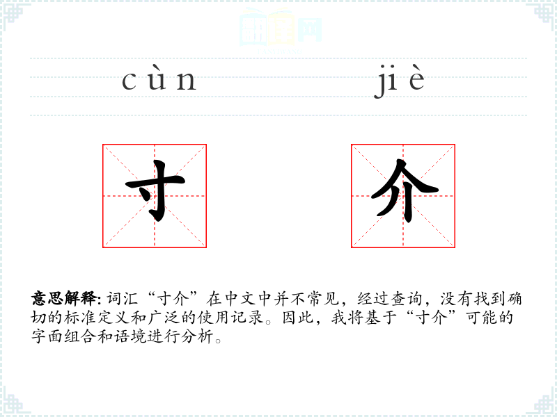 词汇“寸介”在中文中并不常见,经过查询,没有找到确切的标准定义和广泛的使用记录。因此,我将基于“寸介”可能的字面组合和语境进行分析。