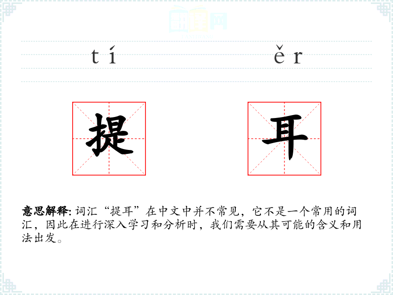 词汇“提耳”在中文中并不常见,它不是一个常用的词汇,因此在进行深入学习和分析时,我们需要从其可能的含义和用法出发。