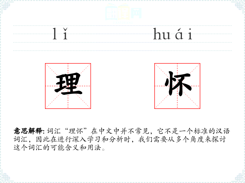 词汇“理怀”在中文中并不常见,它不是一个标准的汉语词汇,因此在进行深入学习和分析时,我们需要从多个角度来探讨这个词汇的可能含义和用法。