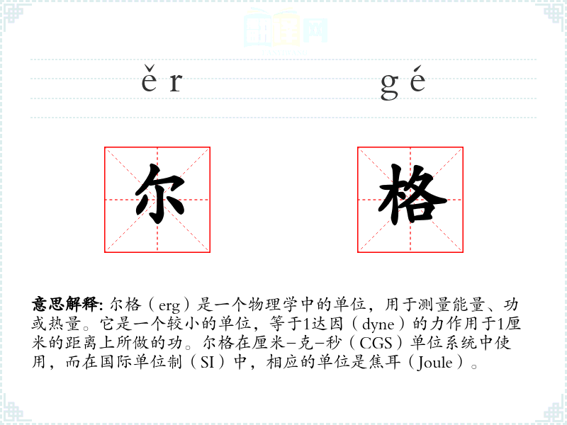 - 同义词:焦耳(Joule),是尔格的国际单位制对应单位,1焦耳等于10^7尔格。