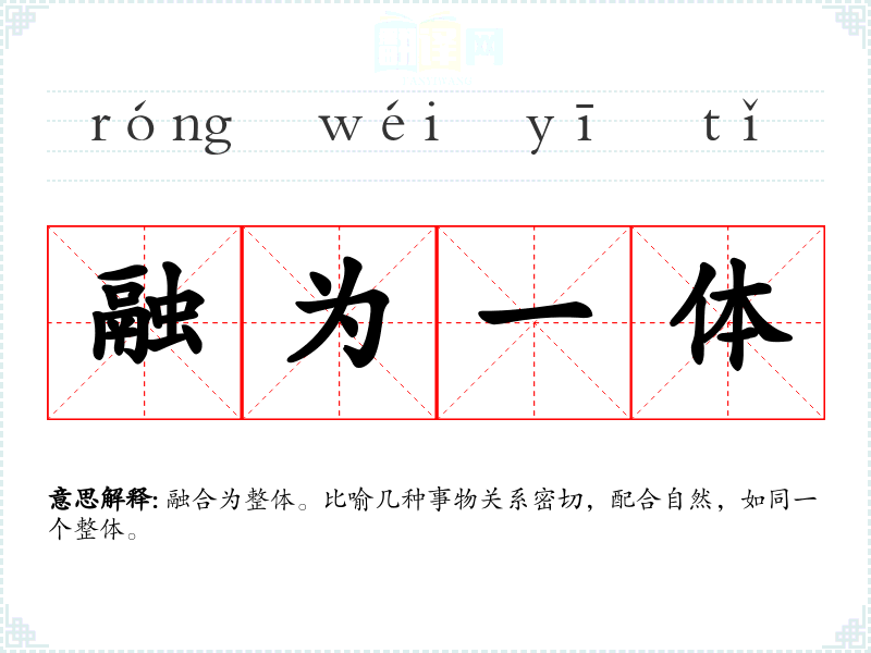 融合为整体。比喻几种事物关系密切,配合自然,如同一个整体。