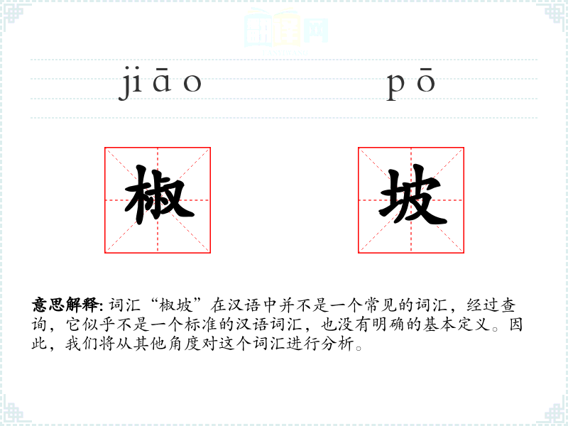 由于“椒坡”不是一个标准的汉语词汇,我们无法探讨其词源和历史演变。