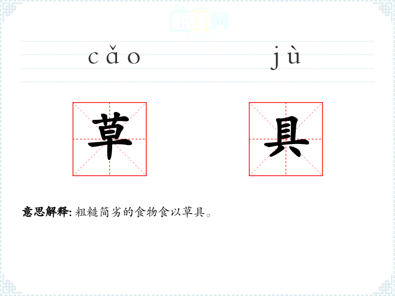 粗糙简劣的食物食以草具。