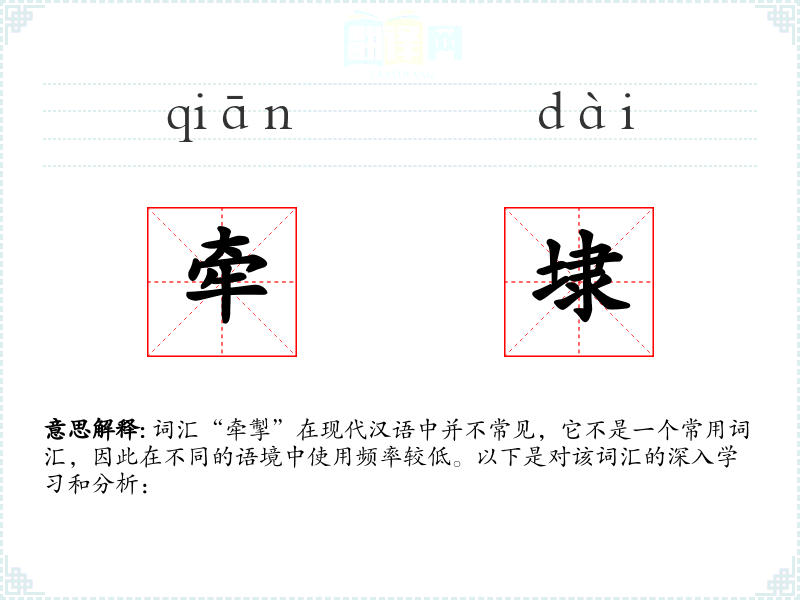 词汇“牵掣”在现代汉语中并不常见,它不是一个常用词汇,因此在不同的语境中使用频率较低。以下是对该词汇的深入学*和分析: