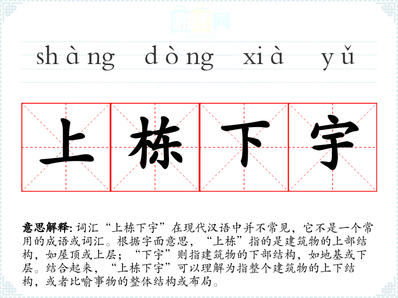 "上栋下宇"的意思解释、上栋下宇是什么意思由翻译网汉语词典查词提供。