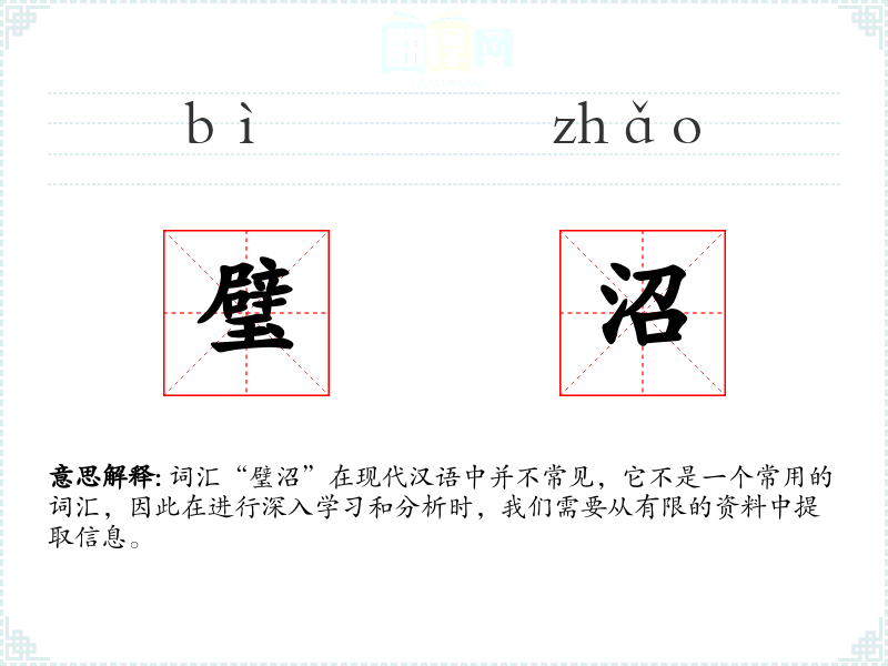 “璧”和“沼”都是古代汉语词汇,它们的结合可能是为了形容一种特定的自然景观。随着时间的推移,这个词可能因为不常用而逐渐淡出人们的视野。