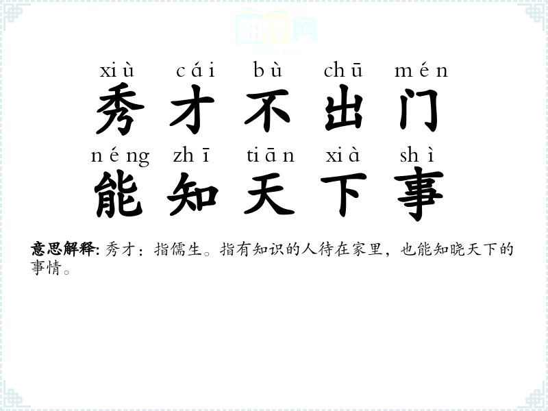秀才:指儒生。指有知识的人待在家里,也能知晓天下的事情。