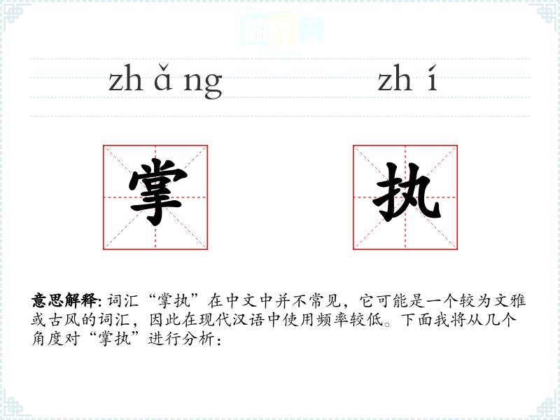 词汇“掌执”在中文中并不常见,它可能是一个较为文雅或古风的词汇,因此在现代汉语中使用频率较低。下面我将从几个角度对“掌执”进行分析: