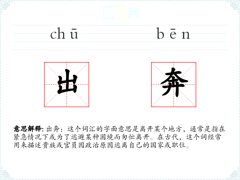 "出奔"的意思解释、出奔是什么意思由翻译网汉语词典查词提供。