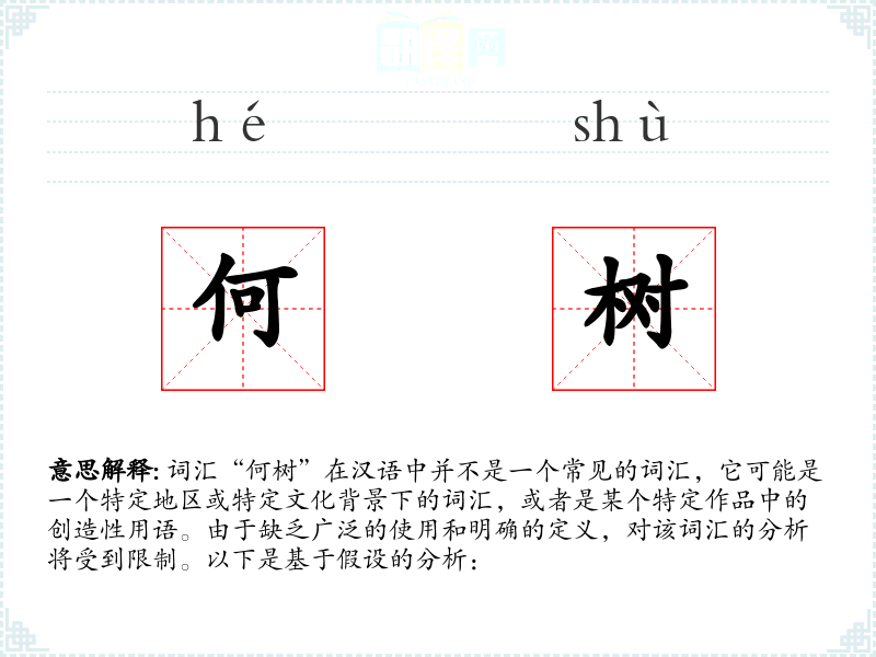 由于“何树”不是一个标准词汇,它在不同语境下的使用可能非常有限。如果出现在文学作品中,它可能是作者用来表达某种特定情感或象征意义的工具。