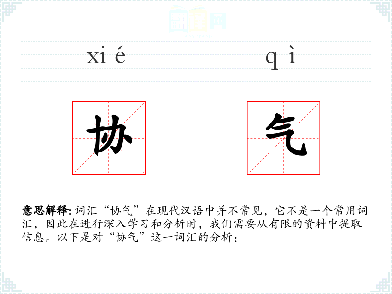 “协气”的词源较为简单,由“协”和“气”两个常用汉字组成。在历史上,它可能并没有特定的演变过程,因为它不是一个常用词汇。