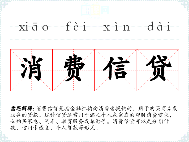 消费信贷是指金融机构向消费者提供的,用于购买商品或服务的贷款。这种信贷通常用于满足个人或家庭的即时消费需求,如购买家电、汽车、教育服务或旅游等。消费信贷可以是分期付款、信用卡透支、个人贷款等形式。