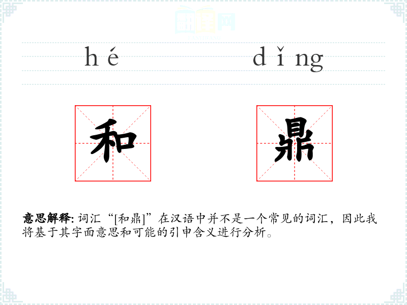 词汇“[和鼎]”在汉语中并不是一个常见的词汇,因此我将基于其字面意思和可能的引申含义进行分析。