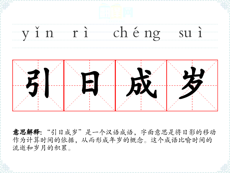 “引日成岁”是一个汉语成语,字面意思是将日影的移动作为计算时间的依据,从而形成年岁的概念。这个成语比喻时间的流逝和岁月的积累。