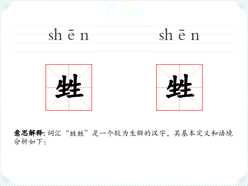 词汇“甡甡”是一个较为生僻的汉字,其基本定义和语境分析如下: