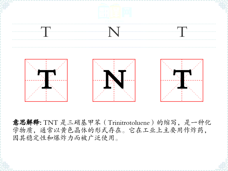※ "TNT"的意思解释、TNT是什么意思由翻译网汉语词典查词提供。