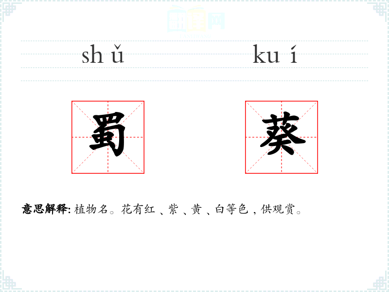 植物名。花有红﹑紫﹑黄﹑白等色﹐供观赏。