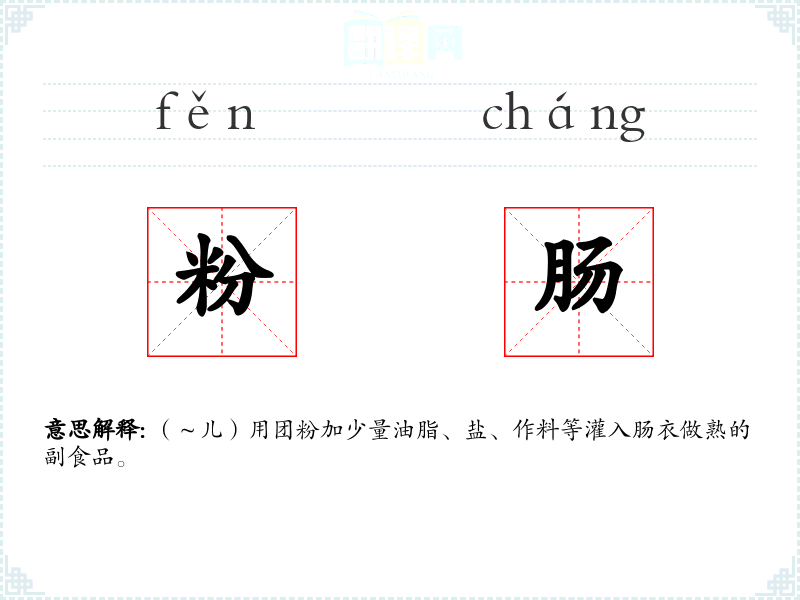 (~儿)用团粉加少量油脂、盐、作料等灌入肠衣做熟的副食品。