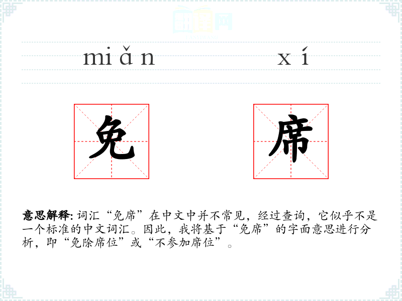"免席"的意思解释、免席是什么意思由翻译网汉语词典查词提供。
