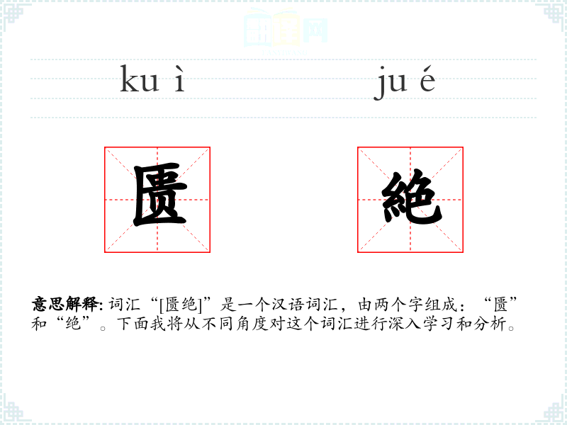 词汇“[匮绝]”是一个汉语词汇,由两个字组成:“匮”和“绝”。下面我将从不同角度对这个词汇进行深入学*和分析。