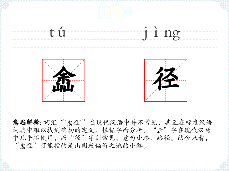 词汇“[嵞径]”在现代汉语中并不常见,甚至在标准汉语词典中难以找到确切的定义。根据字面分析,“嵞”字在现代汉语中几乎不使用,而“径”字则常见,意为小路、路径。结合来看,“嵞径”可能指的是山间或偏僻之地的小路。