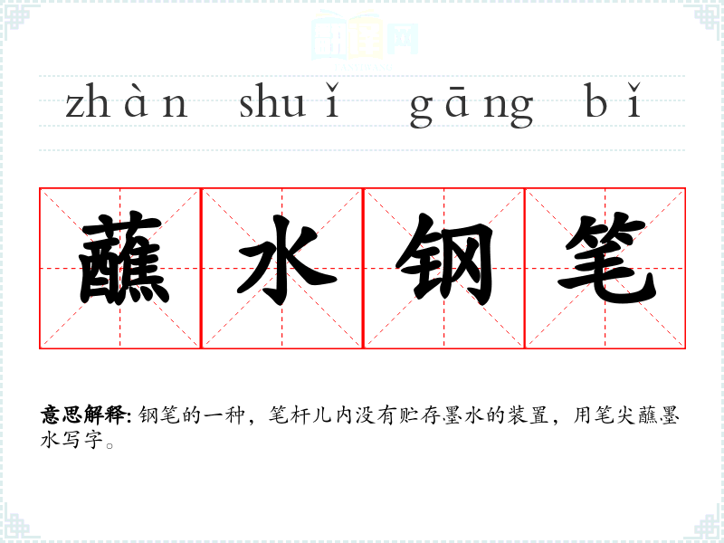 钢笔的一种,笔杆儿内没有贮存墨水的装置,用笔尖蘸墨水写字。
