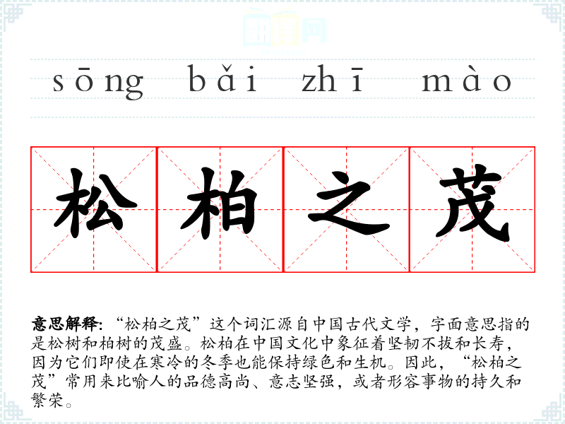 “松柏之茂”这个词汇的词源可以追溯到古代汉语,特别是《诗经》等古代文学作品中。随着时间的推移,它的含义和用法有所扩展,但核心的象征意义保持不变。
