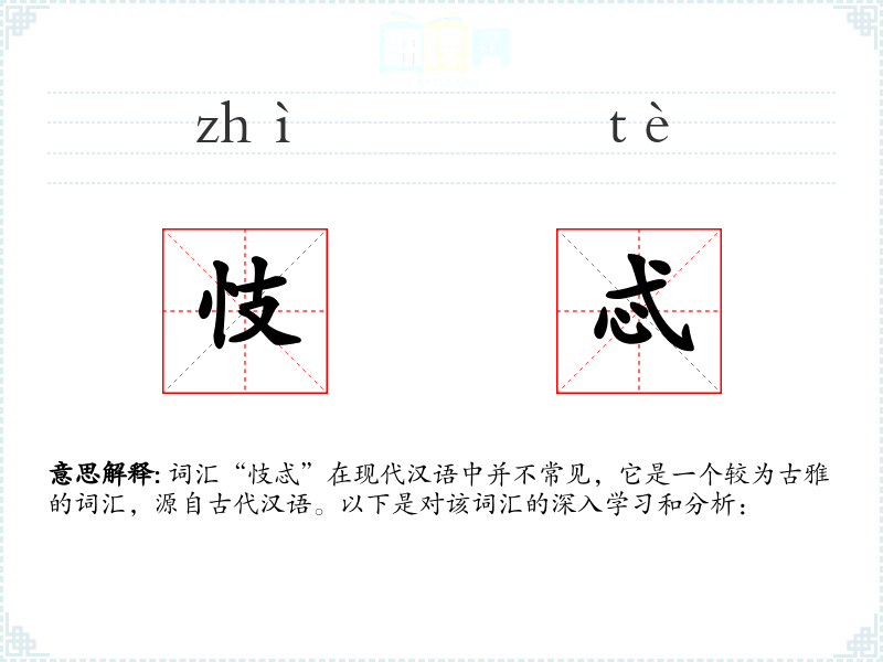 词汇“忮忒”在现代汉语中并不常见,它是一个较为古雅的词汇,源自古代汉语。以下是对该词汇的深入学*和分析: