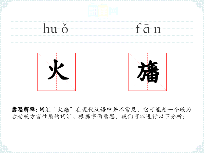 词汇“火旛”在现代汉语中并不常见,它可能是一个较为古老或方言性质的词汇。根据字面意思,我们可以进行以下分析: