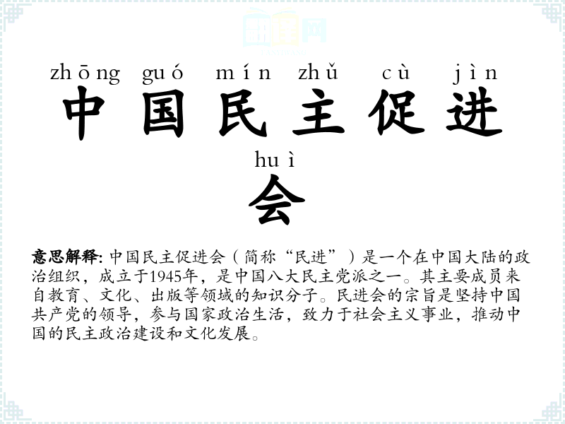 - zhōng guó mín zhǔ cù jìn huì中国民主促进会