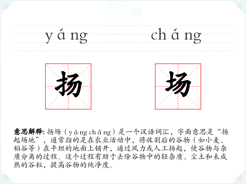 - 同义词:扬谷、扬麦、扬粮
