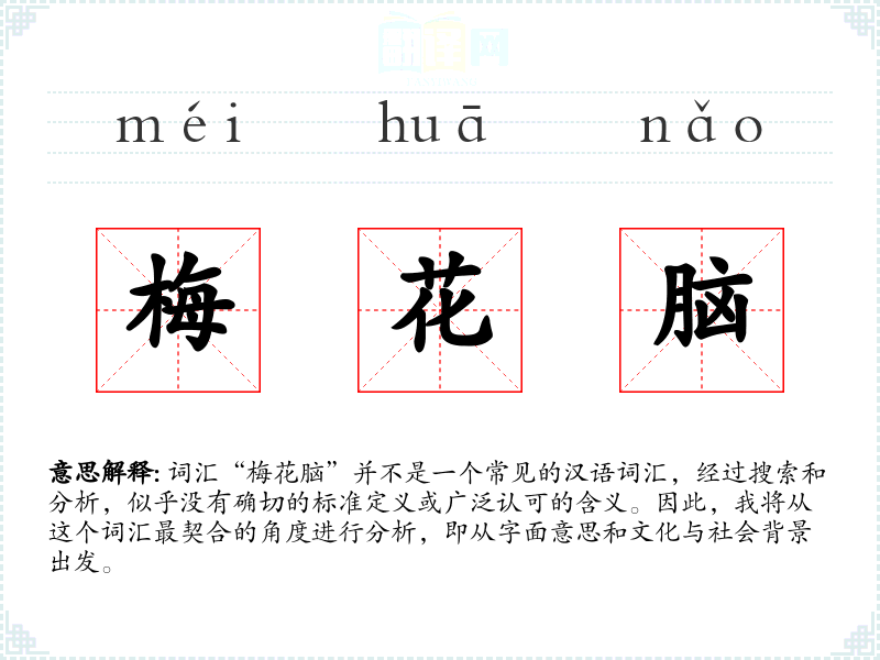 由于“梅花脑”不是一个标准词汇,很难结合图片、音乐或视频进行分析。如果有具体的语境或来源,可以进一步分析。