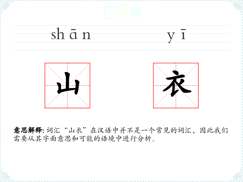 词汇“山衣”在汉语中并不是一个常见的词汇,因此我们需要从其字面意思和可能的语境中进行分析。
