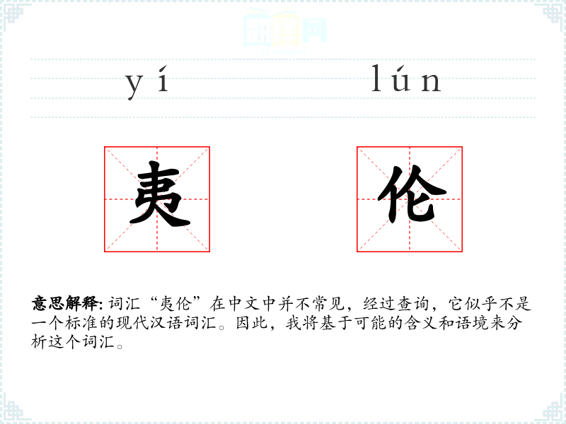 由于“夷伦”不是一个常见的词汇,我们无法给出一个确切的基本定义。如果将其拆分为“夷”和“伦”两个字,我们可以推测: