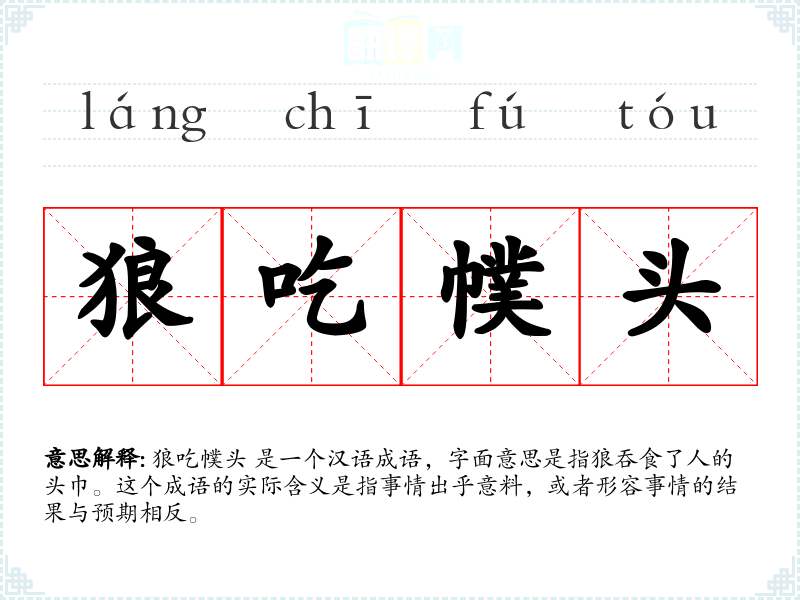 狼吃幞头 是一个汉语成语,字面意思是指狼吞食了人的头巾。这个成语的实际含义是指事情出乎意料,或者形容事情的结果与预期相反。