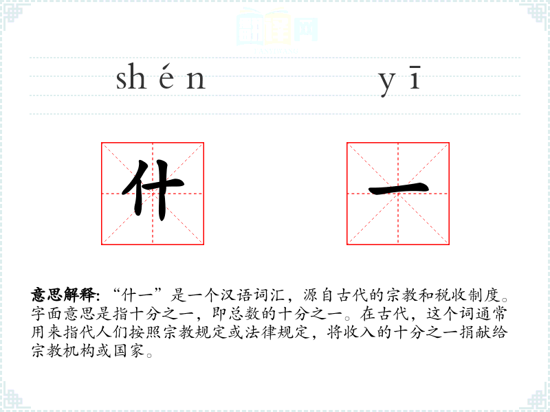 - 口语语境:在现代口语中,“什一”较少直接使用,但可能会在讨论历史或**话题时提及。