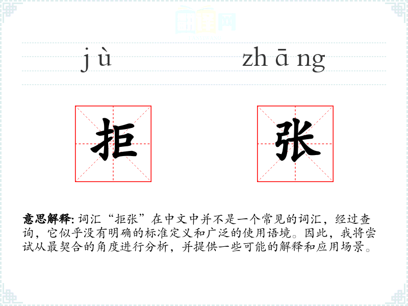 “拒张”作为一个不常见的词汇,它的使用和理解可能需要创造性的解释。在语言学习和表达中,了解和掌握常用词汇更为重要,但探索和理解不常见词汇也能丰富语言的多样性和深度。