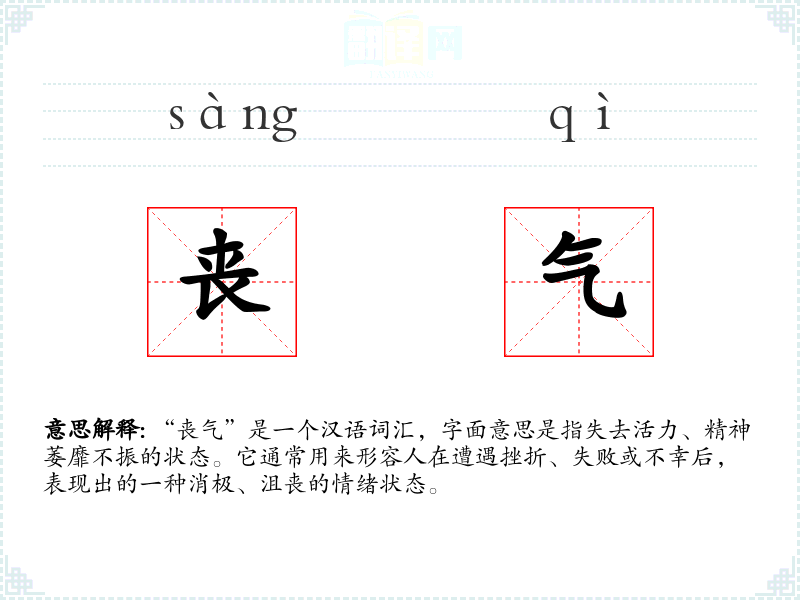 “丧气”是一个汉语词汇,字面意思是指失去活力、精神萎靡不振的状态。它通常用来形容人在遭遇挫折、失败或不幸后,表现出的一种消极、沮丧的情绪状态。