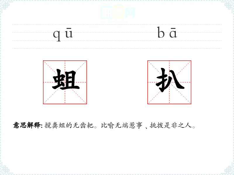 搅粪蛆的无齿耙。比喻无端惹事﹑挑拨是非之人。