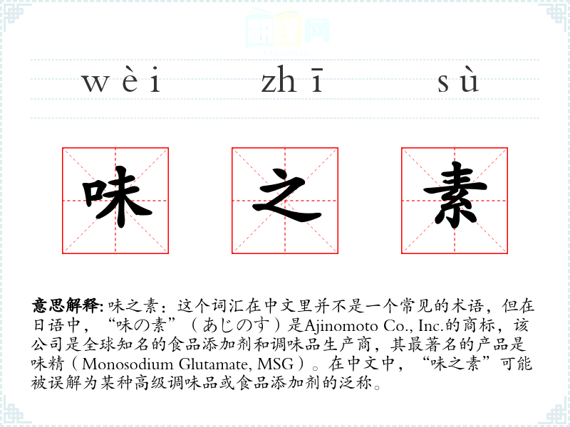 "味之素"的意思解释、味之素是什么意思由翻译网汉语词典查词提供。