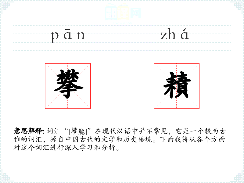词汇“[攀龍]”在现代汉语中并不常见,它是一个较为古雅的词汇,源自*古代的文学和历史语境。下面我将从各个方面对这个词汇进行深入学和分析。