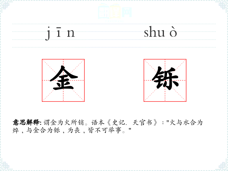 谓金为火所销。语本《史记.天官书》﹕"火与水合为焠﹐与金合为铄﹐为丧﹐皆不可举事。"