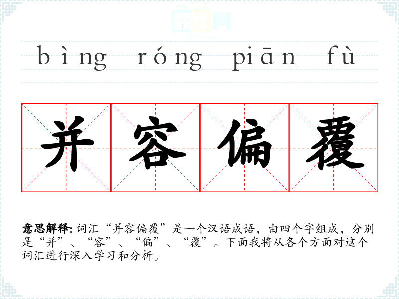 词汇“并容偏覆”是一个汉语成语,由四个字组成,分别是“并”、“容”、“偏”、“覆”。下面我将从各个方面对这个词汇进行深入学*和分析。